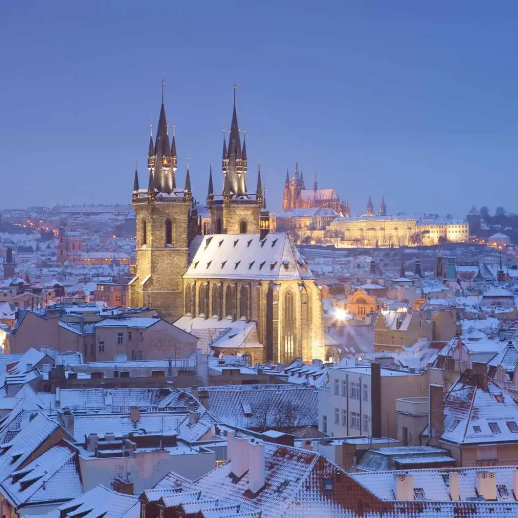 პრაღის თოვლით დაფარული სახურავები და შუასაუკუნეების არქიტექტურა ზამთარში განსაკუთრებულად ლამაზი ხდება. ქალაქის მთავარ მოედანზე გამართული საშობაო ბაზარი ერთ-ერთი ყველაზე ცნობილი და შთამბეჭდავია ევროპაში.